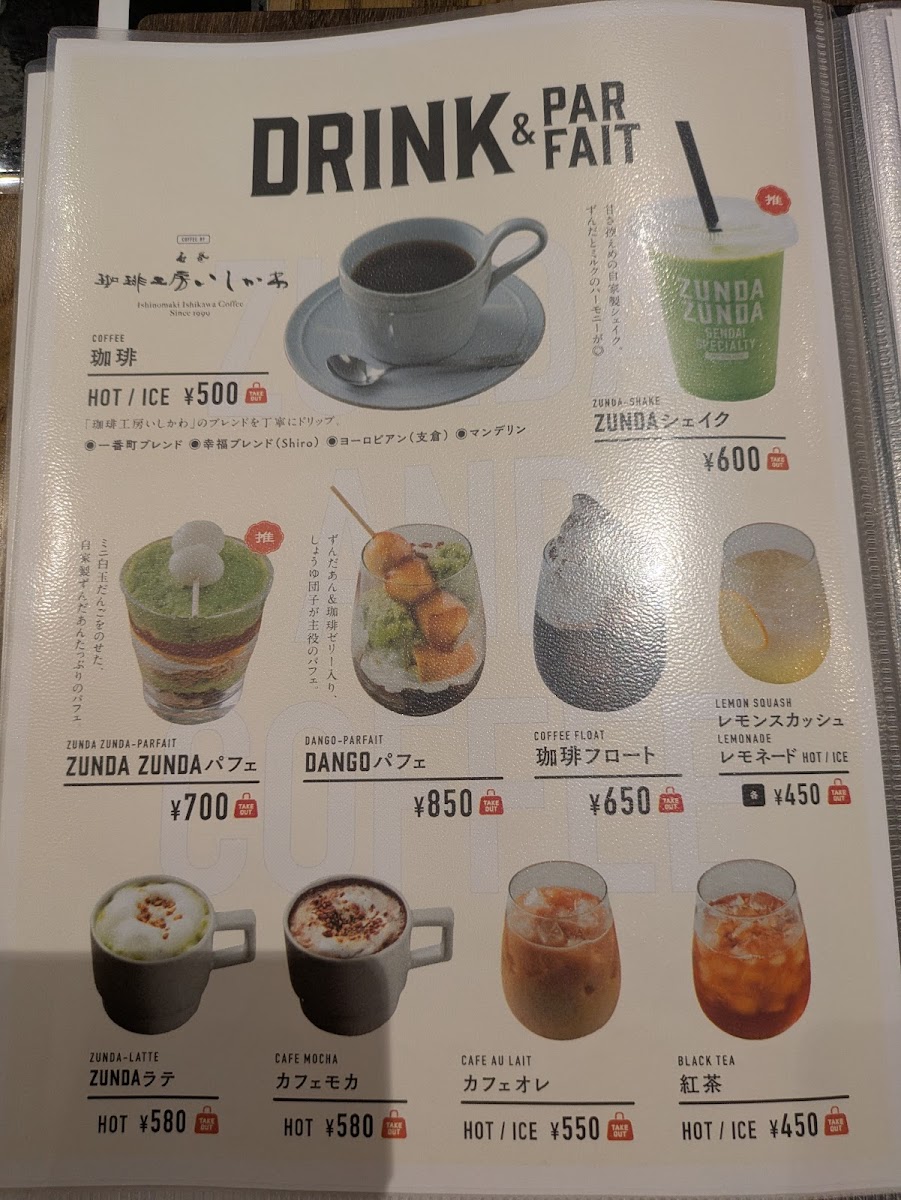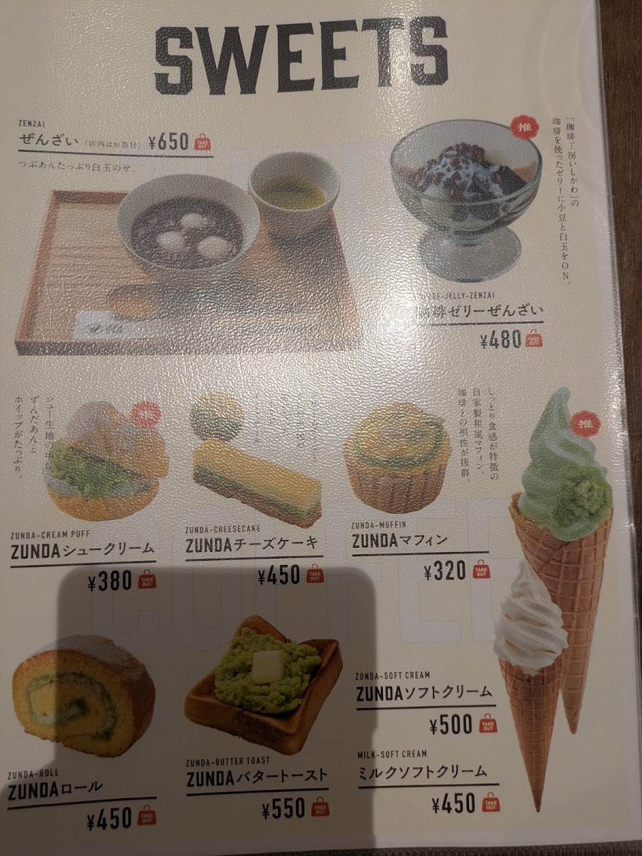 ZUNDA ZUNDA CAFE 仙台一番町本店 Menu